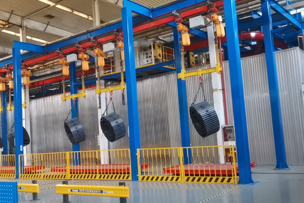 由于懸掛輸送線可在空間上下坡和轉(zhuǎn)彎,布局方式自用靈活,既充份利用空間,又可以與地面的作業(yè)配合進行,因此,廣泛應(yīng)用于機械、汽車、電子、家用電器、輕工、食品、化工等行業(yè)大批量流水生產(chǎn)作業(yè)中。